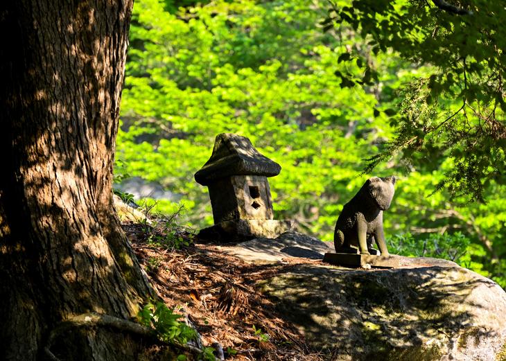 「心字池」の背景となる森を歩くと、涼やかな風を感じることができました。ヤマユリのつぼみも揺れていて、季節ごとの花々を楽しめる庭園なのだなあと思いました。