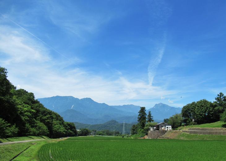 「浄居寺」をあとにすると、梅雨明けの南アルプス連峰が目の前に広がっていました。