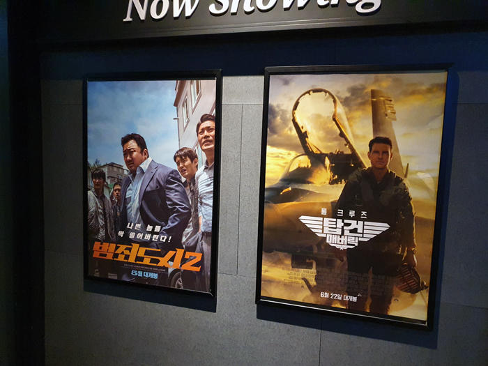 犯罪都市2のポスター(左)と、現在公開中のトップガン(右)のポスター