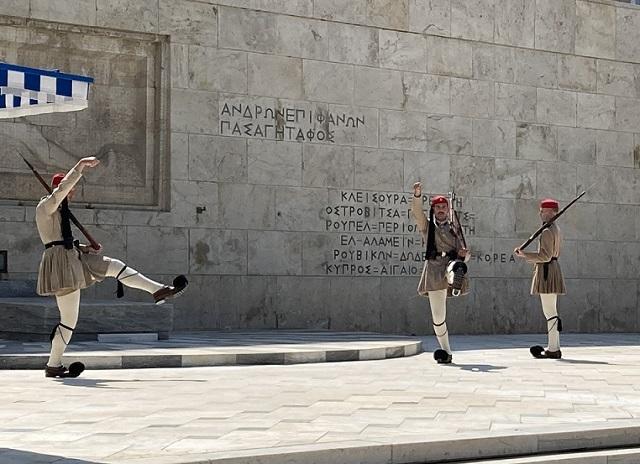 シャツやスカートに何百本も入ったプリーツはオスマン帝国支配下の年数を表しており、ギリシャ国民にとって独立の喜びと誇りが込められた制服。アテネ中心地に来たら、やはり見ておきたいですよね!