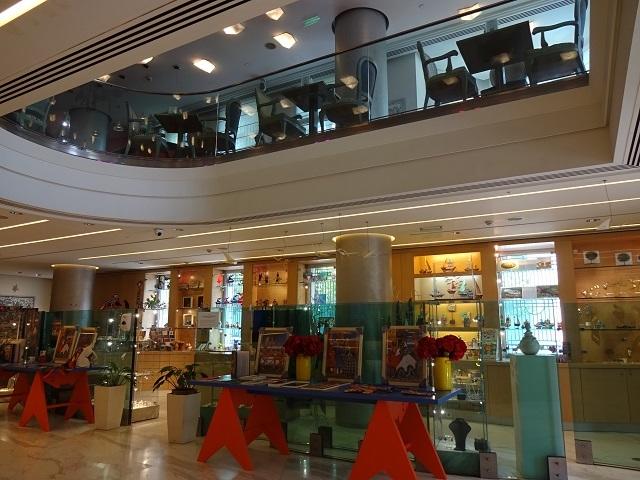 正面玄関を入ると左手に美術館へのチケット窓口、右手にショップ。その上階に見えるカフェには、美術館チケットを買わなくても入れます。