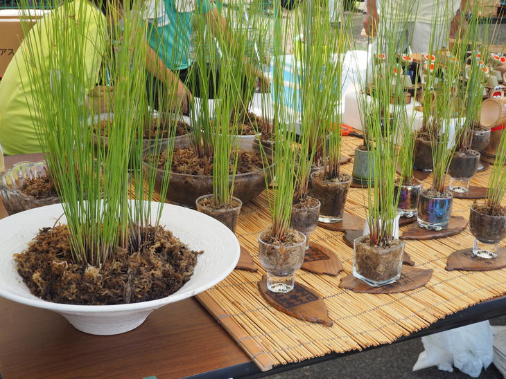 現在、本物の藺草をこの目で見たい! と思ったら「早島・倉敷花ござまつり」で手に入るこんな、苔玉の藺草はいかがでしょうか?