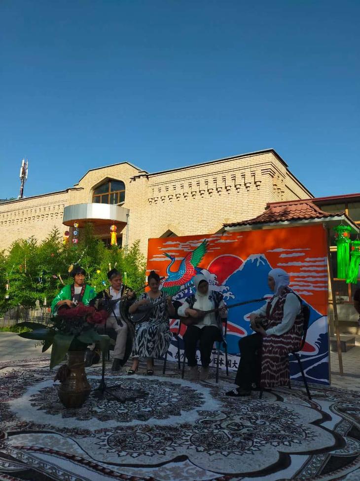 ドゥタール歴が短い私は1曲のみの演奏だったものの、先生やベテラン生徒さんはそれに加えあの「島唄」を演奏されていました。島や海どころではないこの超内陸国で、しかもドゥタールの音色で島唄を聴くのは何とも不思議な体験ですが、日本とウズベキスタンとの交流イベントの開幕を飾るのにふさわしい最高の演奏でした。