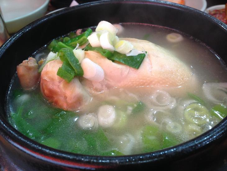 三伏は日本でいう土用丑の日のような日なので、夏バテを防ぐ元気になる料理を食べます。主に参鶏湯で、以前は犬肉料理の補身湯(ポシンタン・보신탕)が食べられる店がありましたが、動物愛護団体の反対運動などによりかなりお店が減り、見かけることが難しいです。参鶏湯は鶏まるまる1羽入っているスープで鶏のお腹にもち米などが入っていて、ほぐしながら、食べる料理です。