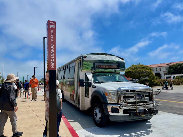 帰路は、フリーのシャトルを利用しました。ビジターセンター脇の「トランジットセンター(Transit Center)」から「プレシディゴー(Presidi-Go)」。今はお手洗いだけですが、もう少しするとカフェが再開されます。トランジットセンターは以前からあるのでご存じの方もいらっしゃると思います。