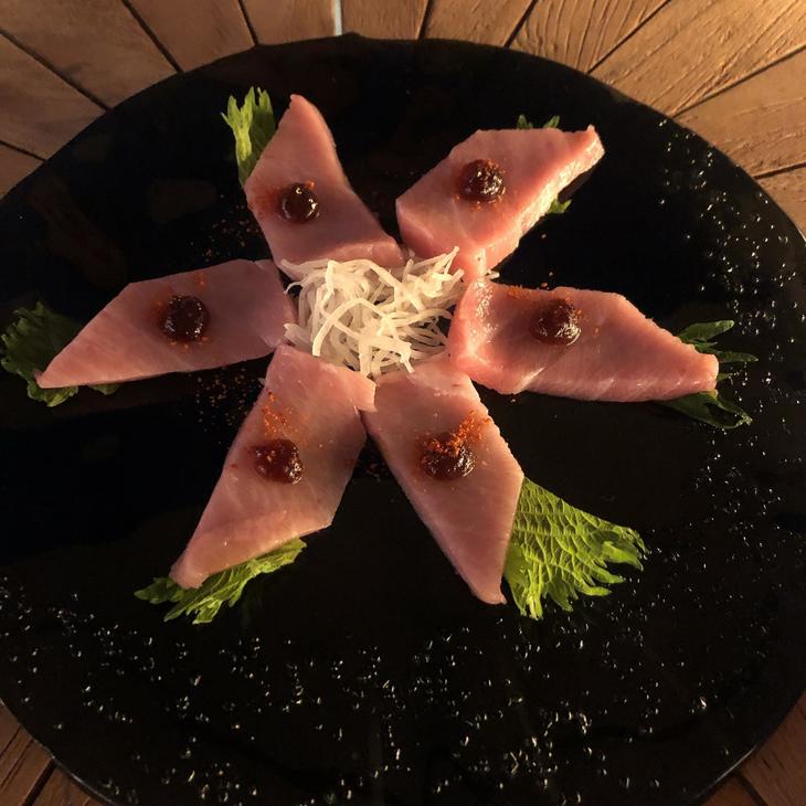 よく見かけるフュージョンの和食レストランではなく、シンプルさは日本のお店さながら。このレストランの哲学は、なんと醤油を使わないということ。シンプルなトロの刺身やお寿司にも醤油はなし。トロには梅肉が、巻き寿司には、葉わさびが添えられていました。ただ、わさびと梅が苦手な主人には、塩を用意してもらいました。