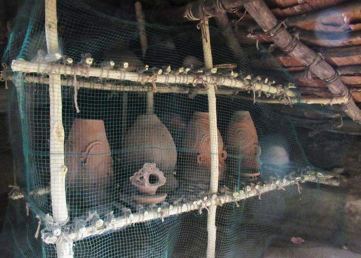 ひとつの住居には、発掘された土器を再現したレプリカがいくつも並んでいました。