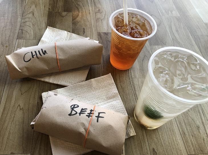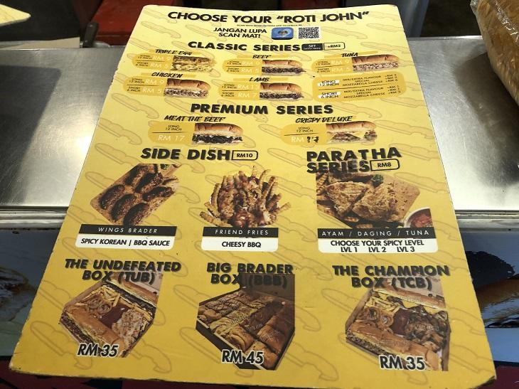 ChickenとBeef、ショートサイズをオーダー。各RM5(約150円)です。お店のカウンターで直接頼みました。