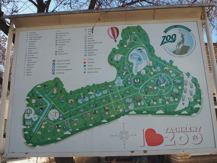 その歴史は古く、公式サイトによると開園したのはソ連時代の1924年。当時はたった3ヘクタールの小ぢんまりした動物園だったようですが独立後拡張計画が立ち上がり、1997年に新動物園がオープン。現在は21.5ヘクタール(東京ドームの4~5倍の広さ)、300種類以上の動物を飼育する、中央アジア最大規模の動物園となっています。