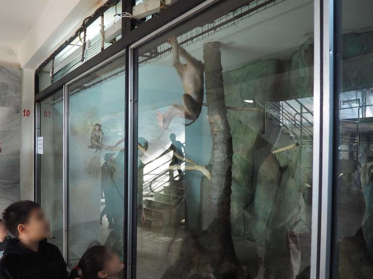 さらにヘビなどの爬虫類館、サル館、オウムなどの小鳥館と室内ゾーンが続きます。