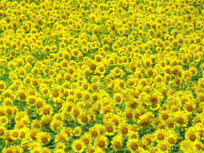 一面ビタミンカラー広がるひまわり畑。ひまわりたちも久しぶりの天気に嬉しそう。