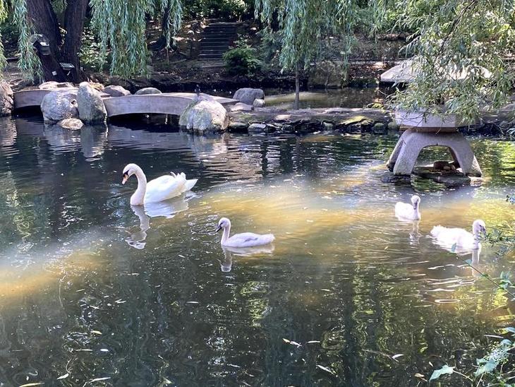 この庭園では白鳥や黒鳥、鴨や孔雀などの鳥が飼われているようで、ちょっとした動物園のような雰囲気も楽しめます。