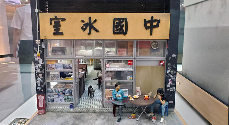 前回の記事で紹介した作品はすべて来日しますが、今回の最大の見どころは「 中国冰室(China Café)」かもしれません。というのは、この作品は閉店が噂されている、油麻地(Yau Ma Tei)にある歴史ある茶餐庁「美都餐室(Mido Cafe)」をモチーフにしているからです。こちらは内部まで精密に再現されているので、じっくり見て見てください。