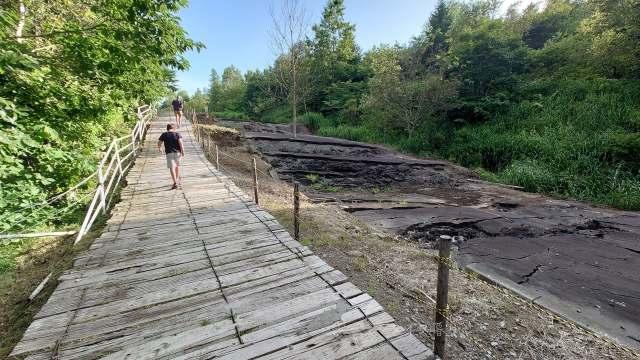 散策用の歩道が設置されており、破壊された道路を横目に展望エリアまで歩いて行けます。