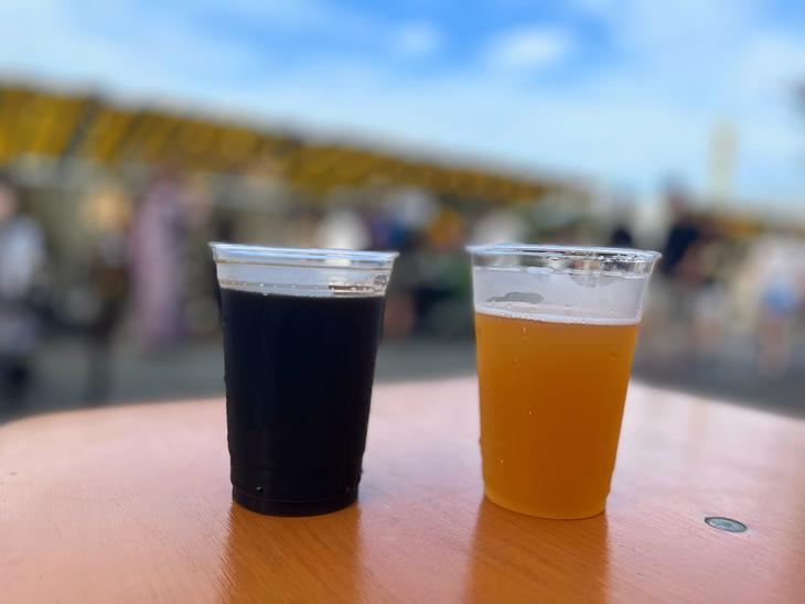 青空の下で飲む新鮮なビールは美味しいなあ。