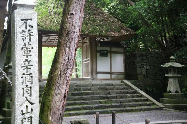 山門の横の石碑に記されるのは、「不許葷辛酒肉入山門」の文字。