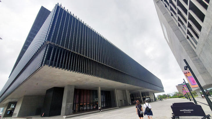 この建物は18階建て、大きさ6万5000平方メートル、そのうちメインのエキシビションスペースが1万7000平方メートルあります。展示室は33あるほか、3つの劇場、土産店、カフェ、映画館、ビクトリア・ハーバーを見わたせるルーフガーデンなどがあります。実際の展示スペースはB2から3Fまでの5フロア分がメインになると思います。さらにメインとなるのは2Fのギャラリーです。ここを大きく東西南北のゾーンにわけて作品を展示しています。