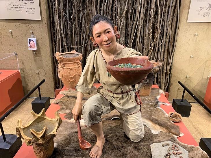 こちらは「ゆきえ」さん。縄文人のデータを元に復元されたそうです。5000年前、この御代田町でこんな美しい土器を使って、こんな生活してたんだと想像するととても楽しいですね。とてもきれいな博物館です。お時間があるときにゆっくり見て頂きたいですね