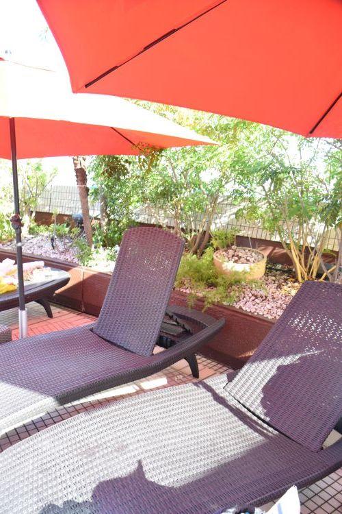 デッキチェアに寝転ぶと、大阪にいながらまるで海外リゾートに行った気分に!