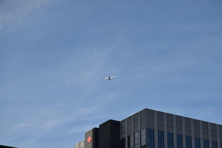 航空路線になっているようで、ビルの合間をしきりに飛行機が飛んで行くのを眺めることができました。
