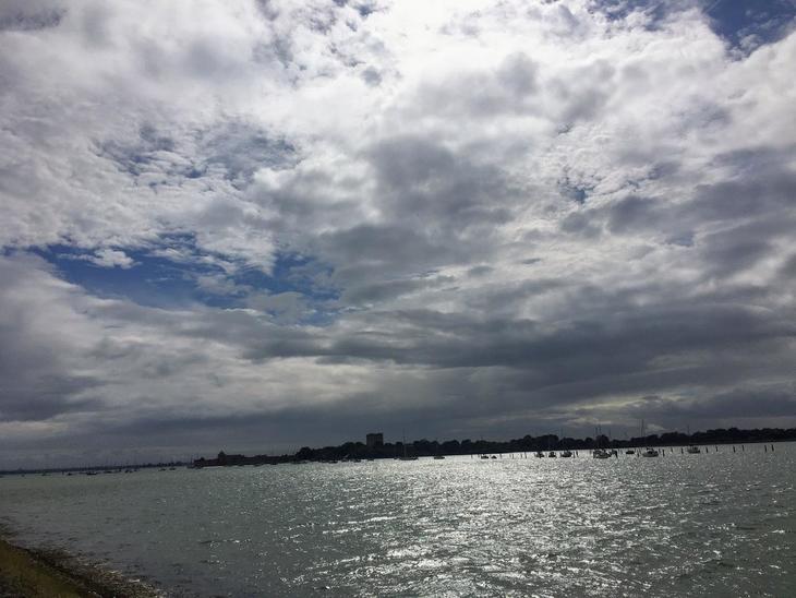 対岸には「ポートチェスター城(Portchester Castle)」が見えますが、週末はお休みという変わった施設なのが残念です。その先にはワイト島が、さらにもっと先をゆけばフランスがあります。