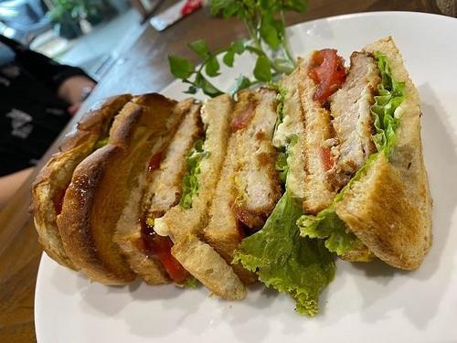 友人Rは手作りパンドミのカツサンド。サクサクでおいしそうでした!