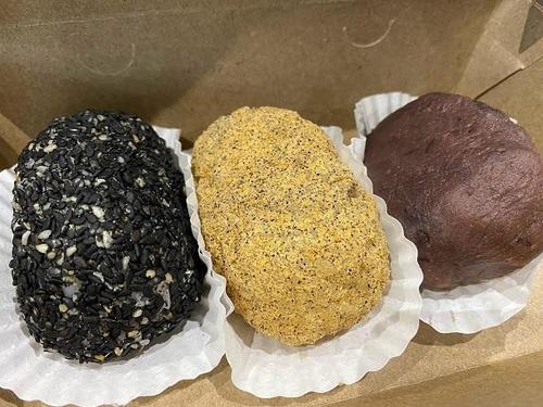 おはぎ3種。こちらの中は半殺し?ってやつですかね。もち米の粒が残っていてあんこもあっさり、何個でも食べられるわ。
