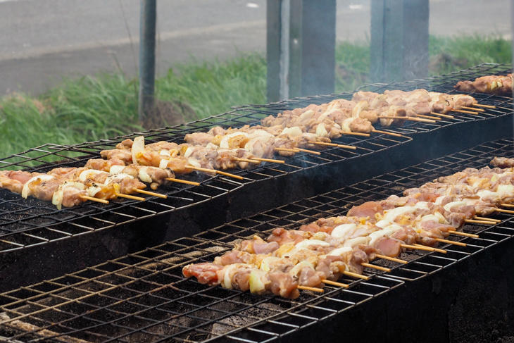 とても人気があるやきとりで、この日も行列ができていました。