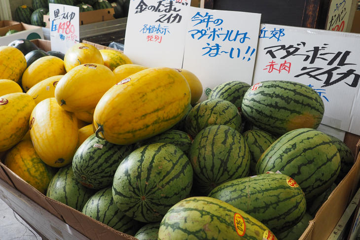 以前にも増して種類豊富なスイカが並んでいます。