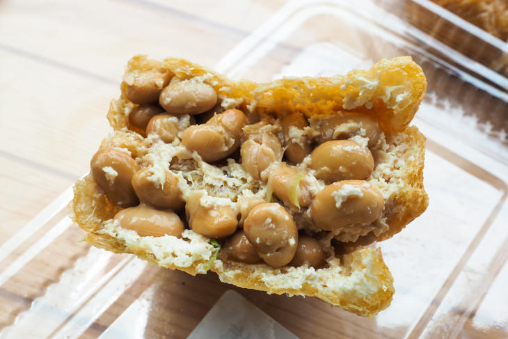 こんがり焼いた「あげなっとう」は、揚げはパリっと、なかの納豆は大粒でねっとりとしています。