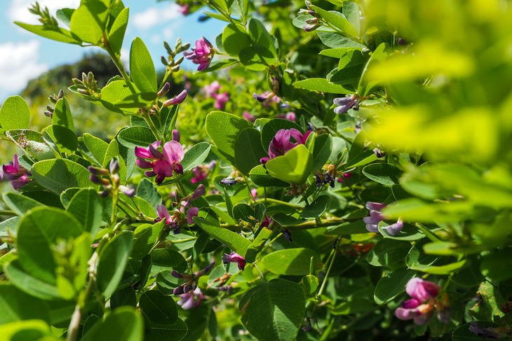 紫がかったピンクの花が無数についたハギは丈も高く、強風で丈が低い花が多いこの辺りでは、群生していると存在感があります。