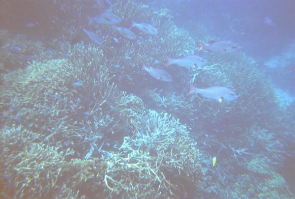 シュノーケルでも十分に楽しめるサンゴ礁↑