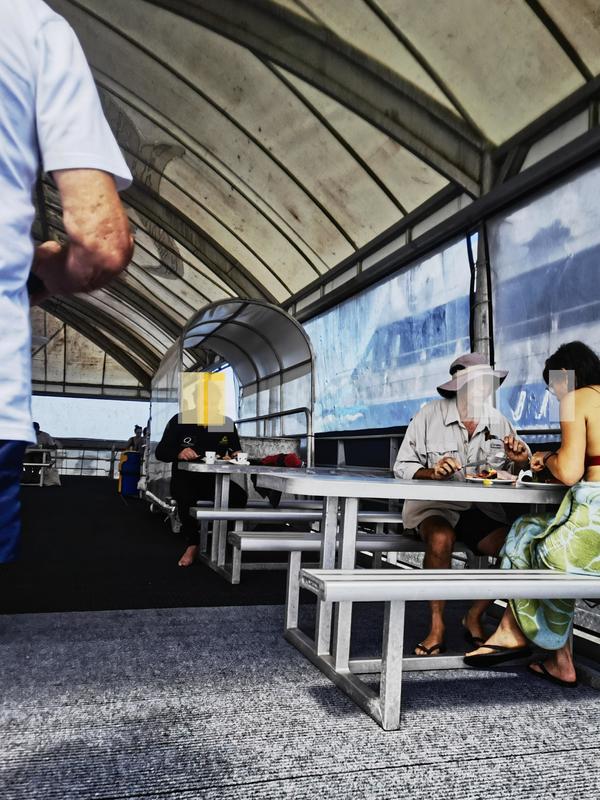3.昼食をはさむ約3時間、ポンツーンで食事・休憩をしながらスノーケル・ダイビングを楽しみます。