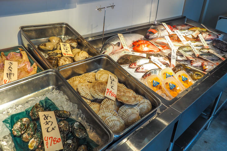 狸小路商店街側の入り口とは反対側、北側の入り口を入ってすぐ左手にあるのは、「シハチ鮮魚店」。