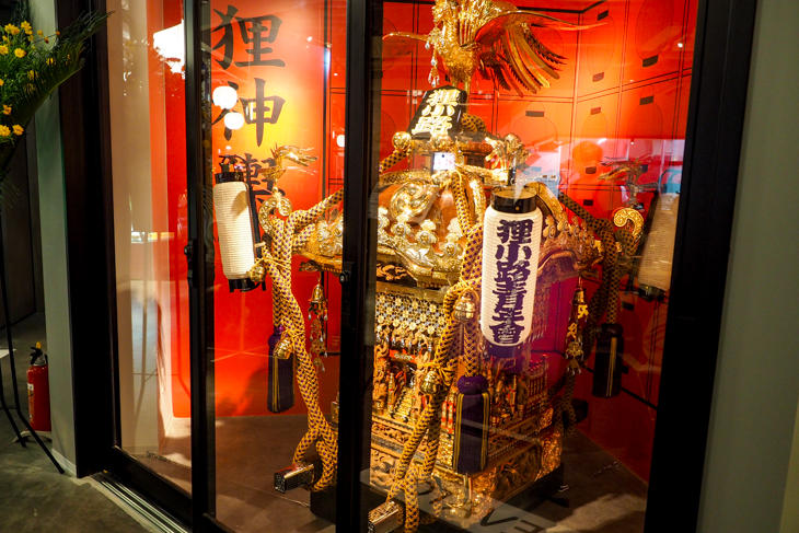 シハチ鮮魚店横には、狸まつりの神輿渡御でおなじみのおみこしを見ることもできます。