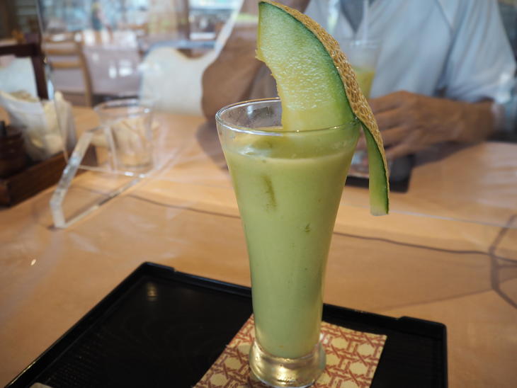 足守メロンは流通量が少なくスーパーで見かけることはなく、ネットやデパートで買うと5000円弱です。それを考えると、このジュースは暑い中を歩いてスタンプを集める甲斐がありますよね。
