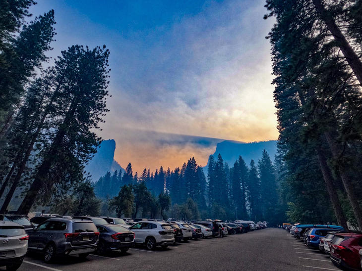 8月31日の朝は、折からの南風に乗りヨセミテ渓谷に煙が立ち込めていました。