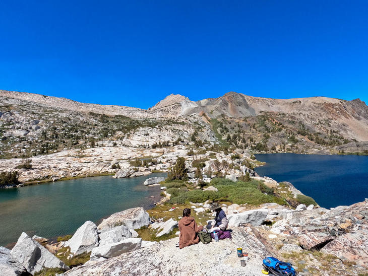 Steelhead Lakeを見下ろす岩の上でコーヒーを沸かして持参したサンドイッチで極上ランチ。