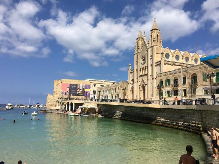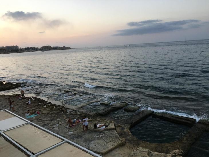 午後は「バルータ広場(Balluta Square)」前に広がるバルータ湾で水遊びをし、さらにはホテルの屋上プールからも海を眺めながら泳ぎ、イギリスのように水温を気にせずとことん遊び尽くしました。