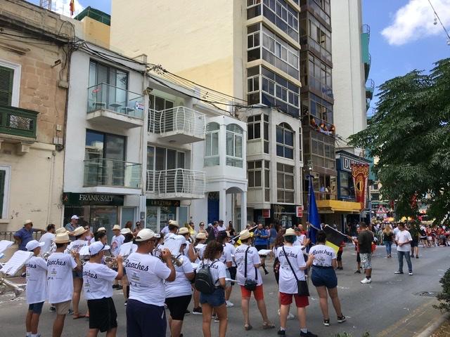今回拠点にしたセント・ジュリアンズ(St. Julian’s/San Giljan)はかなり主要な観光地のようで、着くなりパレードの最中で、お手製の紙吹雪が舞うは(2階の窓からごていねいに、大量のシュレッダー紙のようなものを撒き散らしています)管楽器が鳴り響くはでとってもにぎわっていました。