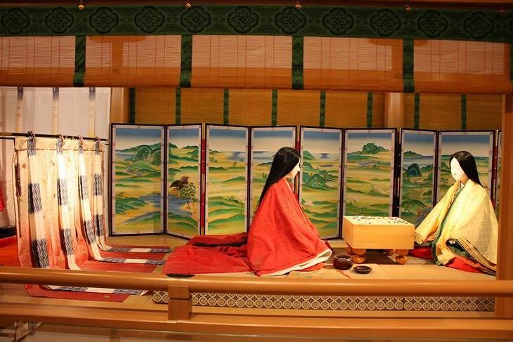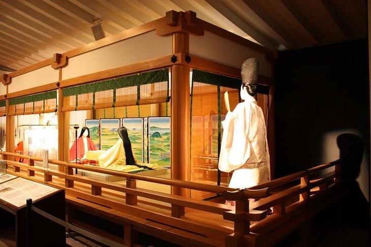 展示室では、実物大の牛車や調度品の復元のほか、光源氏の邸宅である