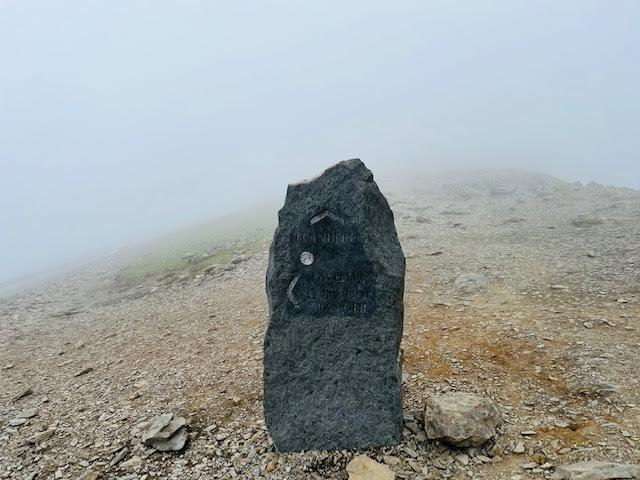 ここで一面、霧に包まれましたが、石の道標で山頂方向を確認。