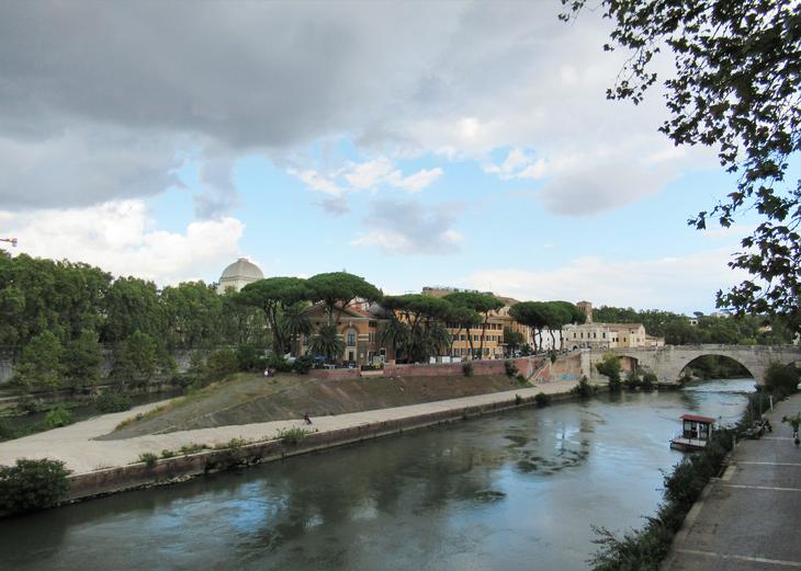 ガリバルディ橋から見たテヴェレ川。川向こうがローマ中心街へ続きます。