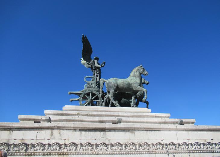 トップの写真は「ヴィットリオ・エマヌエーレ2世記念堂」の屋上テラスから撮ったブロンズ像「勝利の女神が操る馬車」です。