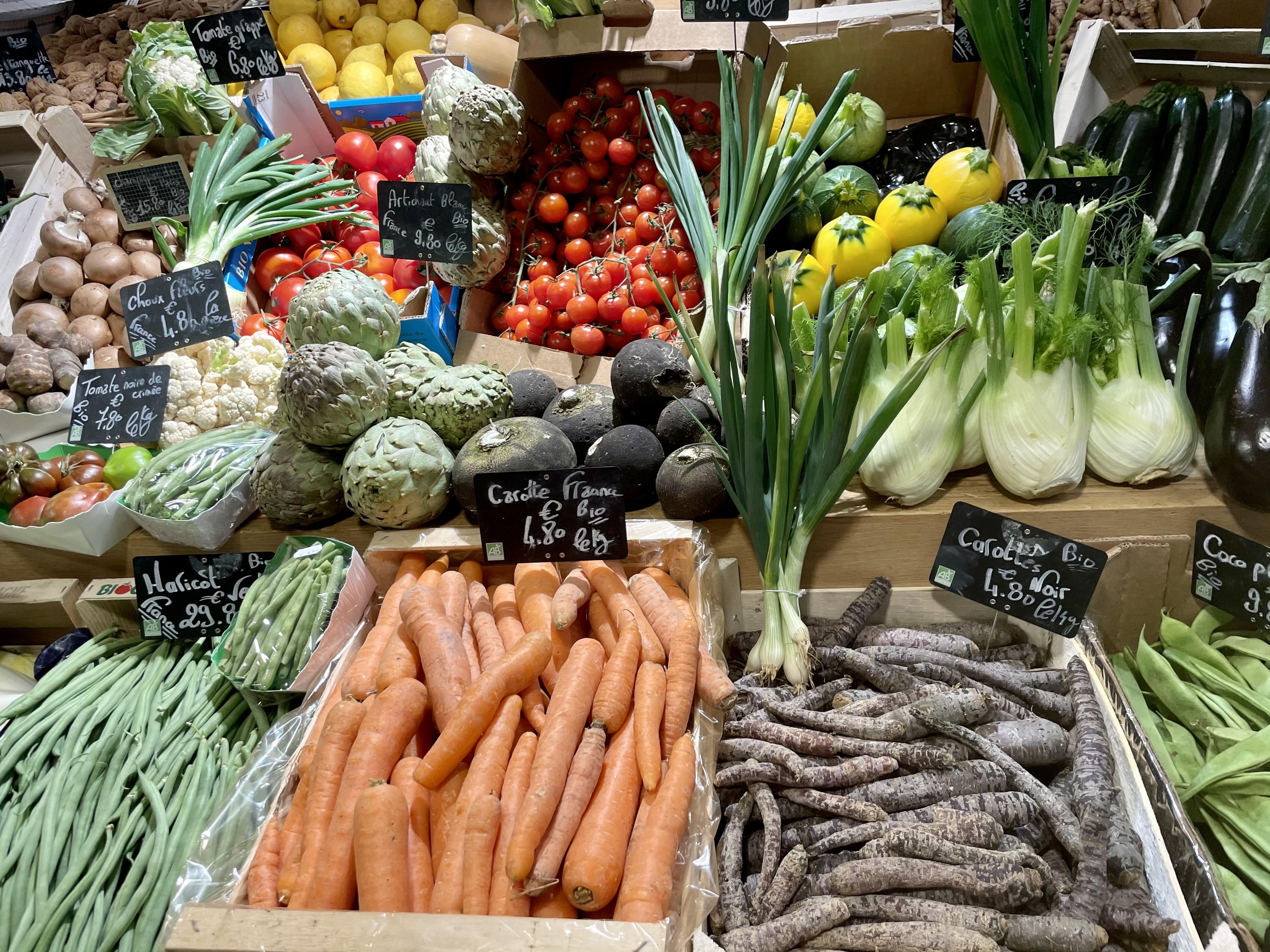 農業大国フランスのお野菜はみな甘く、味がしっかりしているので塩を足す必要は大人でもあまり感じません。フランス料理はこってりぎっちりしたイメージを持たれがちですが、季節の野菜や果物をしっかり摂るため、意外とヘルシーなのです。