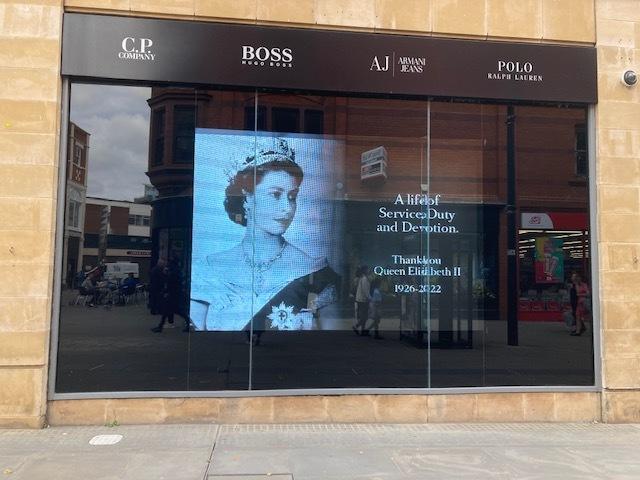 ご崩御から国葬後の7日間までは国全体が喪に服す期間となり、街なかにも彼女への追悼メッセージなどが溢れています。
