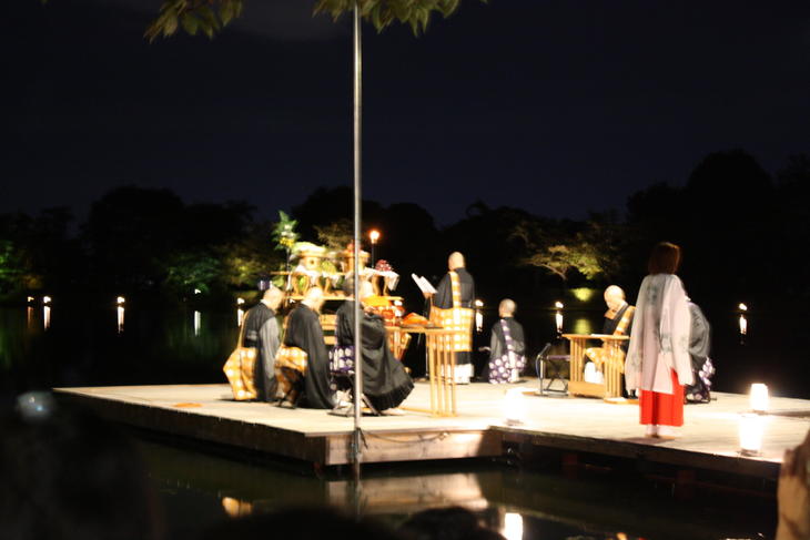 「観月の夕べ」では、舟に乗り(龍頭舟か鷁首舟)池を周遊することもできます。