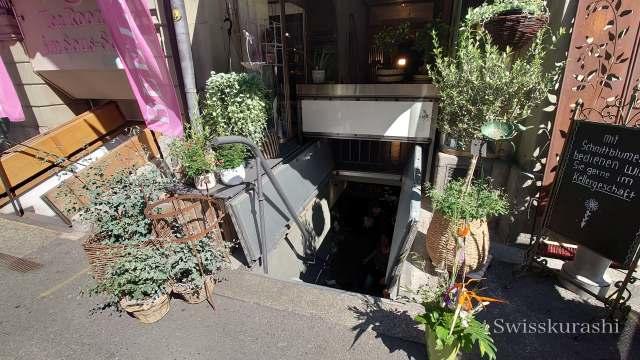 入り口の階段を降りていくと、中にお店があるというなんとも面白い店内。