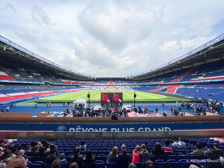 さて、9月25日に訪れたのがパリ西部にあるサッカースタジアム、パルク・デ・プランスで開かれたゲームイベント「レッツ・プレイ・パリ」。ここではパリ市内に店舗を構え、またパリのリヨン駅にも期間限定で出店していた駅弁屋の花善がブースを出すというので行ってきました。