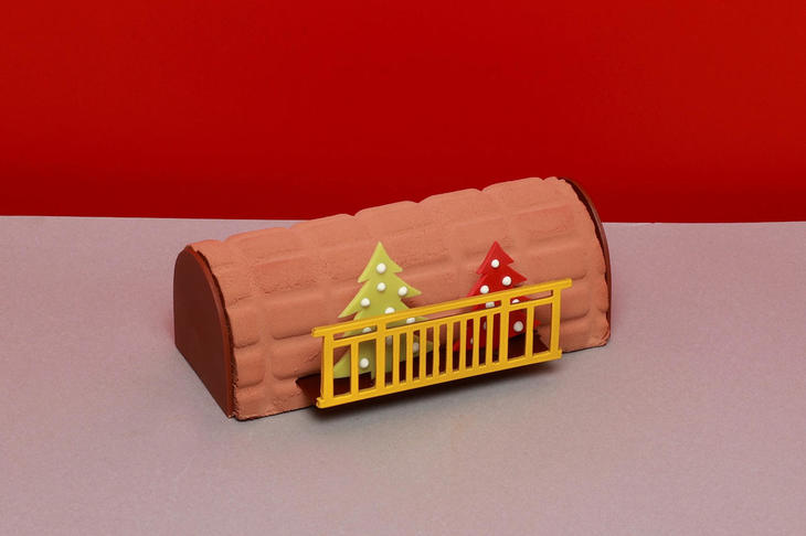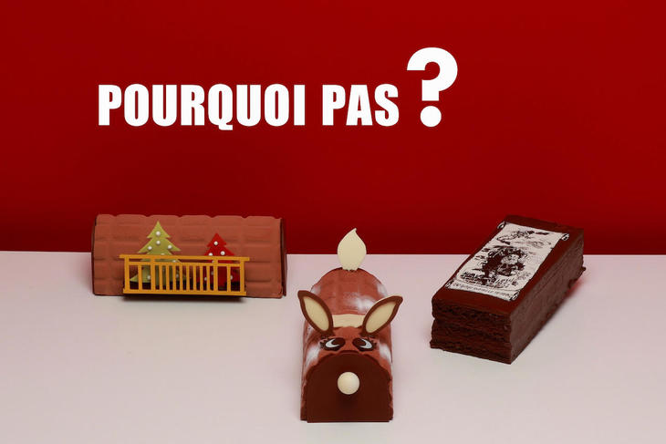 そこで毎年、気になるのがクリスマスケーキ。フランスではビュッシュ・ドゥ・ノエルと言います。「ビュッシュ」とは丸太、「ノエル」はクリスマスという意味で、「クリスマスの丸太」となり、その名の通り横たわった円柱型のケーキです。